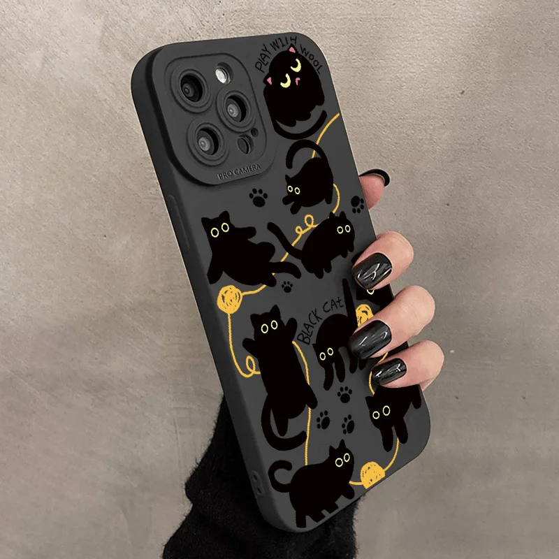Black Cat Case For Samsung Galaxy S25 Ultra Samsung A16 A55 A54 S22 S23 Plus A52