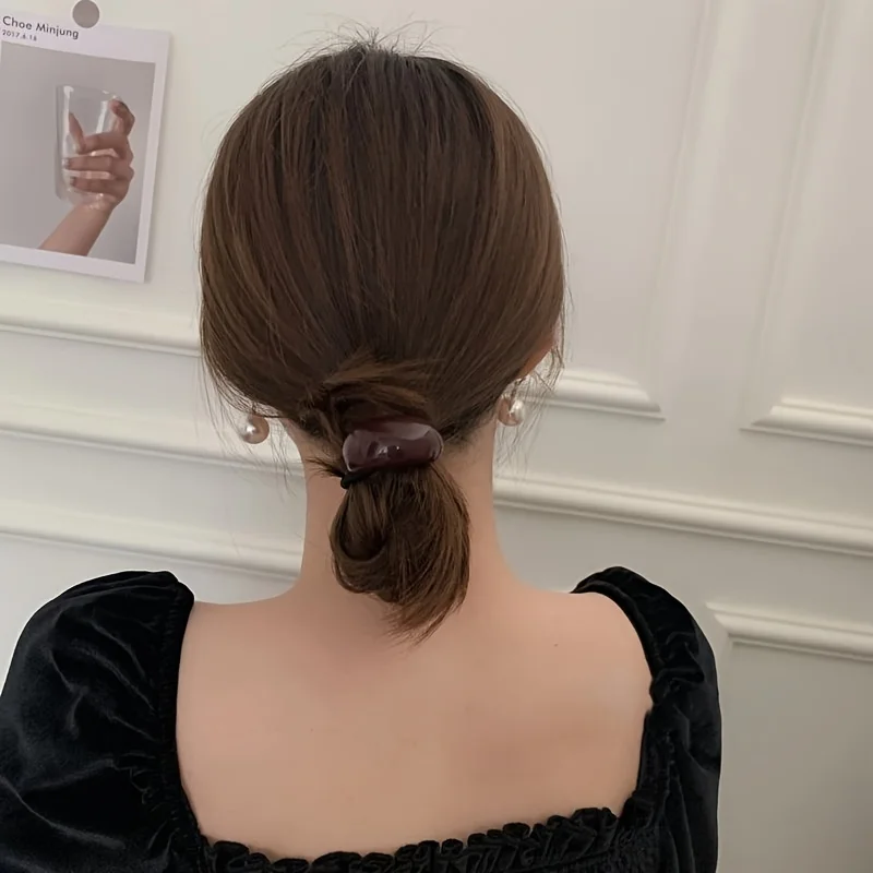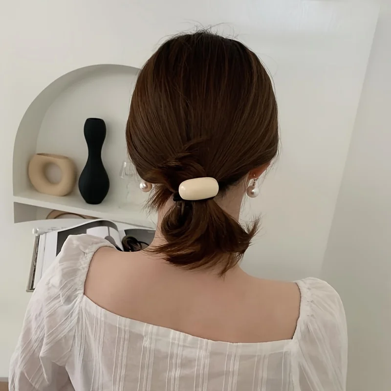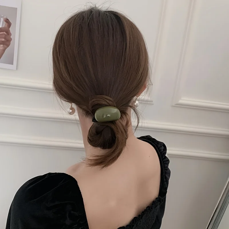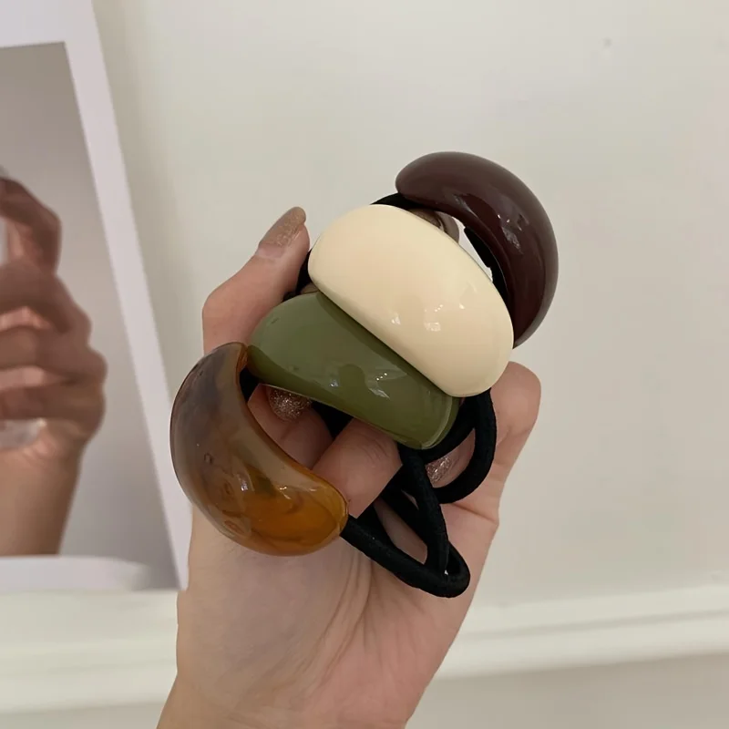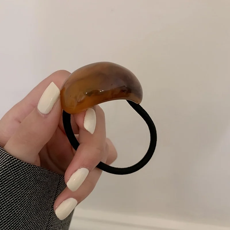 Hot selling new acrylic pea curved girl hair loop tie ponytail headband leather